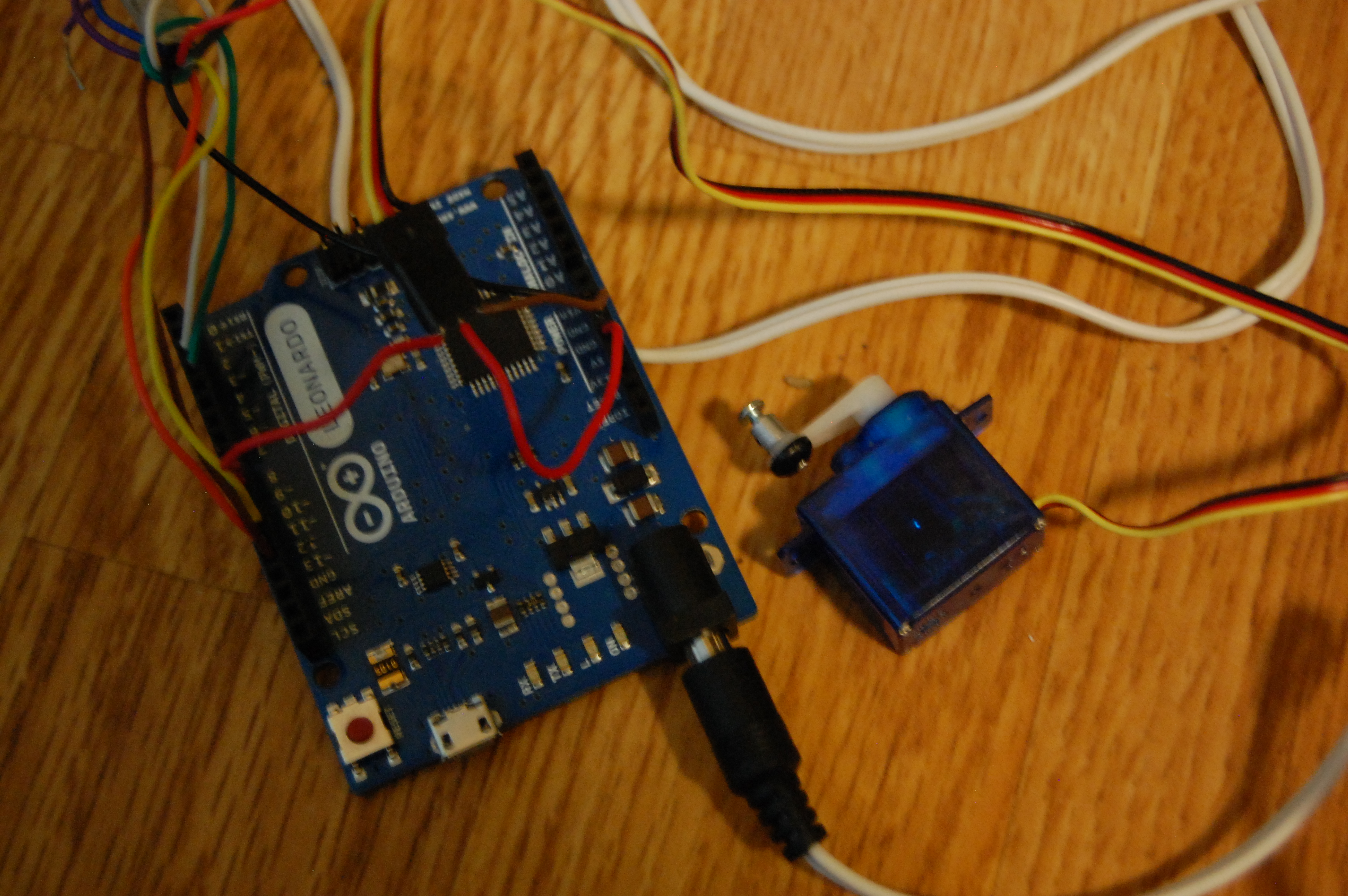 The entire gizmo runs on wall power, turns a servo, and remembers legal keys across reboots. All that's left is attaching the servo to the wall.