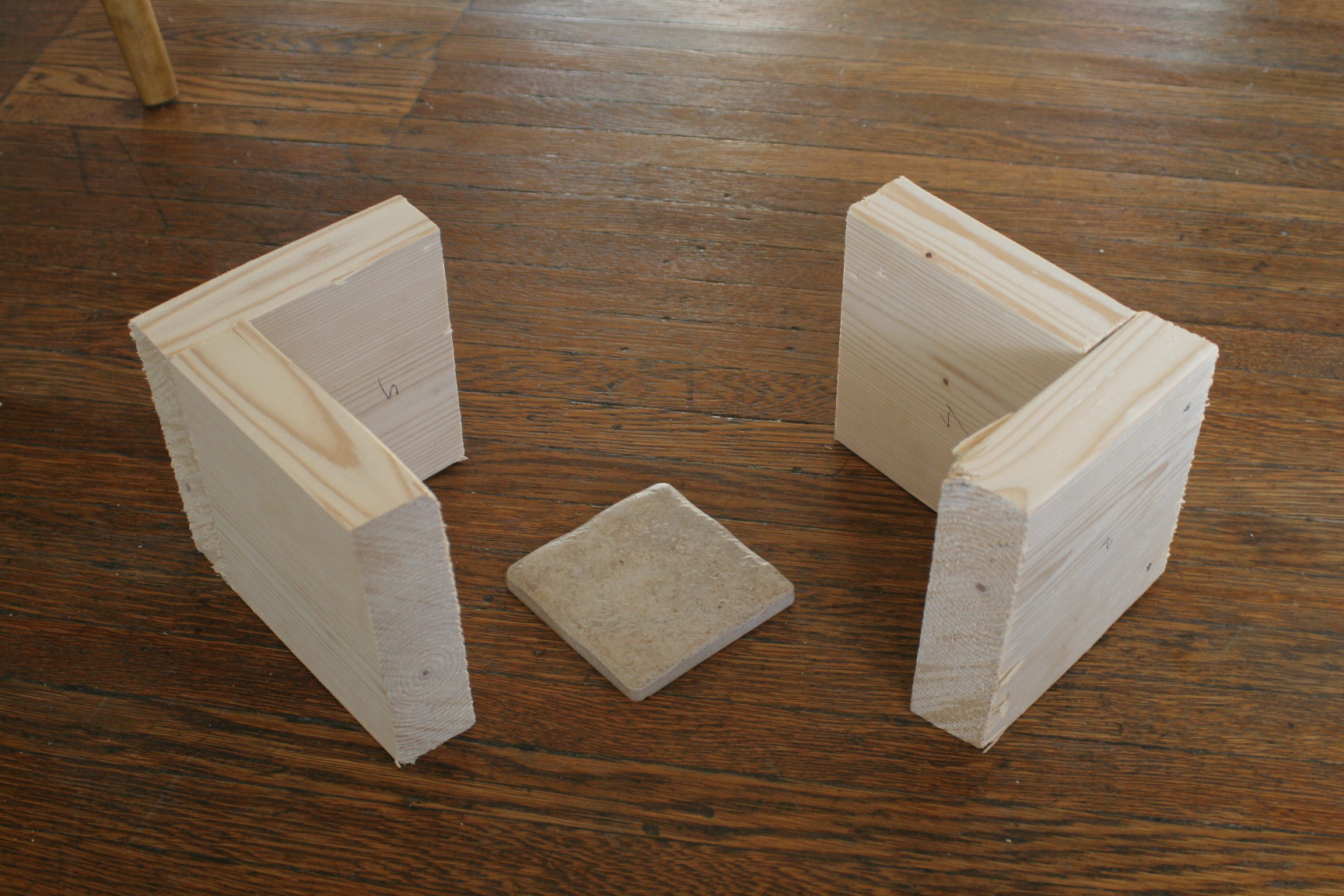 We couldn't find a stand in any of the stores we visited, so we decided to make our own. A trip to Home Depot netted us a pair of 2x6x8's, a saw, hammer, nails, and some tiles.