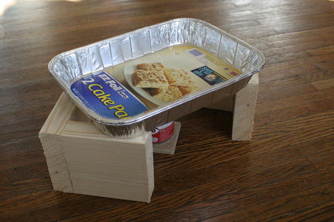 We need to serve food hot, of course. Sterno (small alcohol burners) are the easiest way to keep hot food hot. No electricity, no smoke, and it's what dining services uses. But flames need air, so we need to suspend our trays of food not-on-the-table, which brings me back to the wood shop.