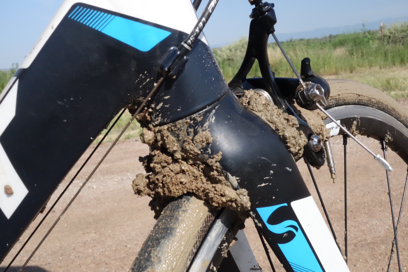 He wasn't wrong. After riding over five miles of gross wet clay-ish mud that clogged my brakes and caked my frame, the road vanished. Heavy rains and also some normal rain flooded a nearby river. The flood waters ate away at the road until there wasn't any road left. The signs said Road Closed. It could have said Road Missing.