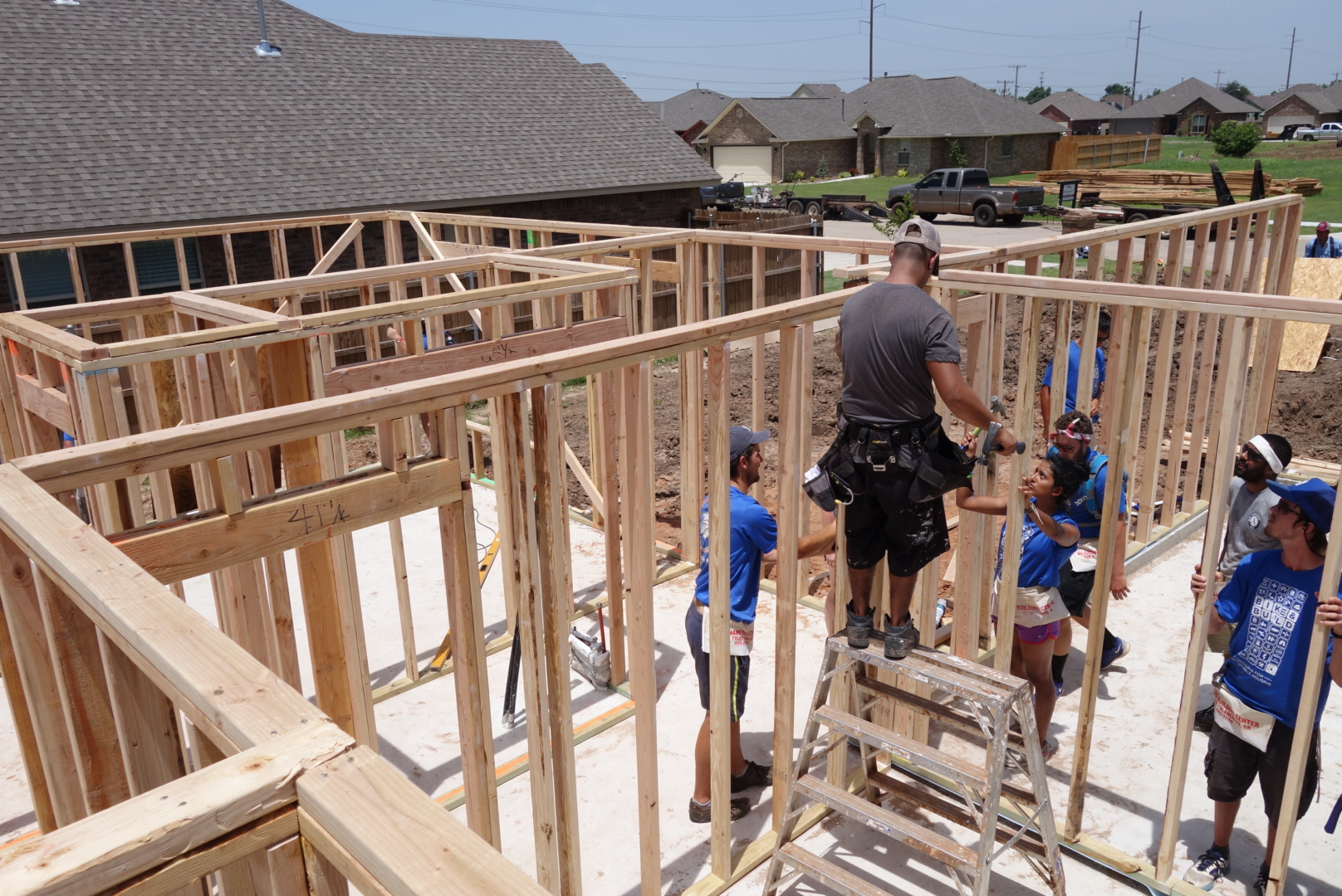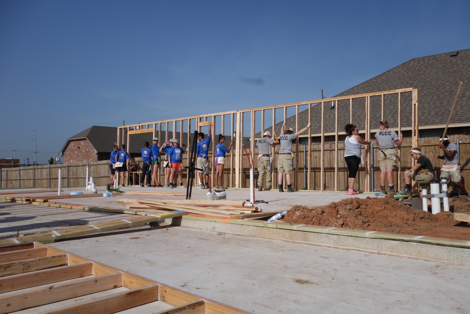 Our two build days in Oklahoma City were spent on the same build site, so we had the chance to make really substantial progress. Our group arrived to an empty concrete slab and managed to complete the framing and sheeting in one day and the roof trusses the next.