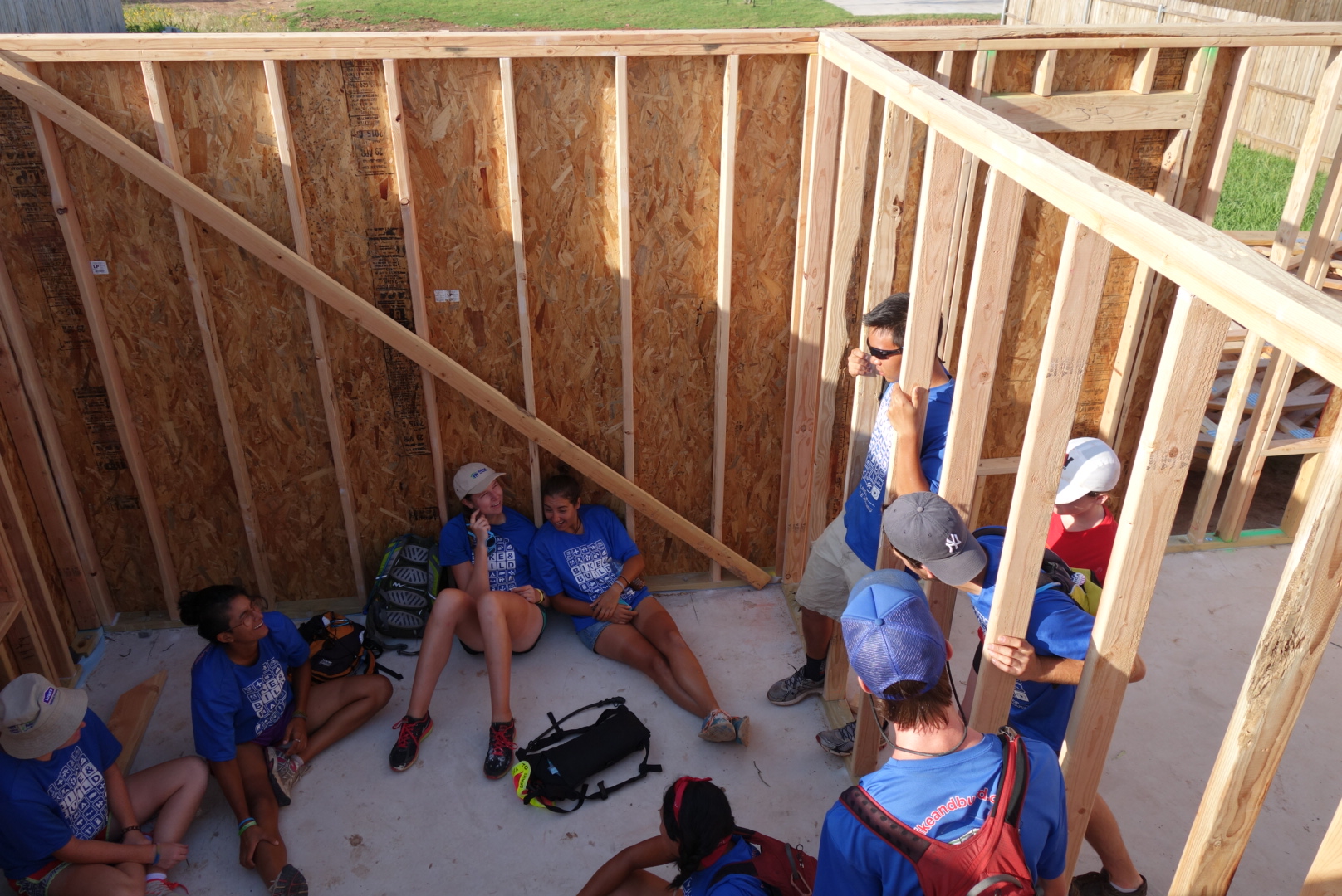 We kept building on the same house today. As I wrote before, the sheeting needed a ton of nails, so lots of today was spent nailing those down more securely. We also hoisted a pile of prefab roof trusses, and a few people scrambled around on the roof nailing then down.