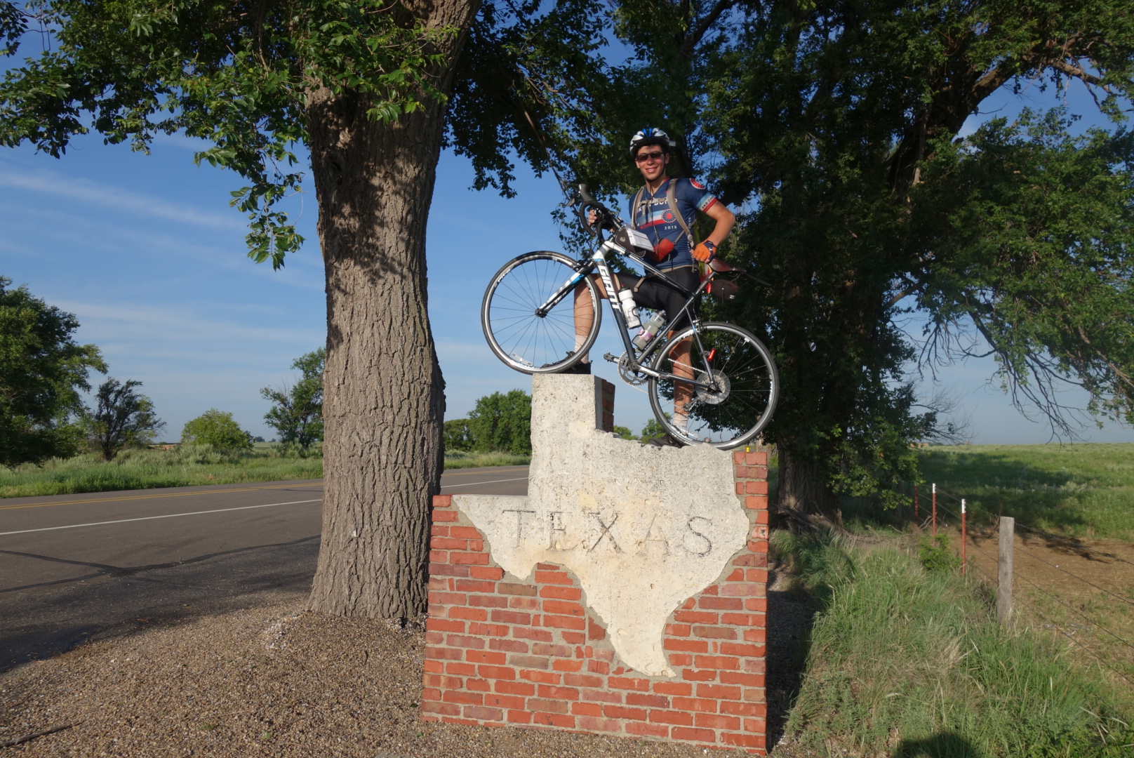 Texas has the coolest state sign so far. Here I am modeling our route.