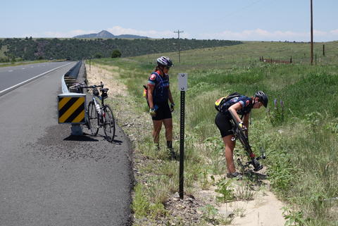 We biked into Colorado today! As we crossed through New Mexico and approached Colorado, the plains gradually began to give way to mesas and hills. As we neared the state line, the Rockies even came into view.