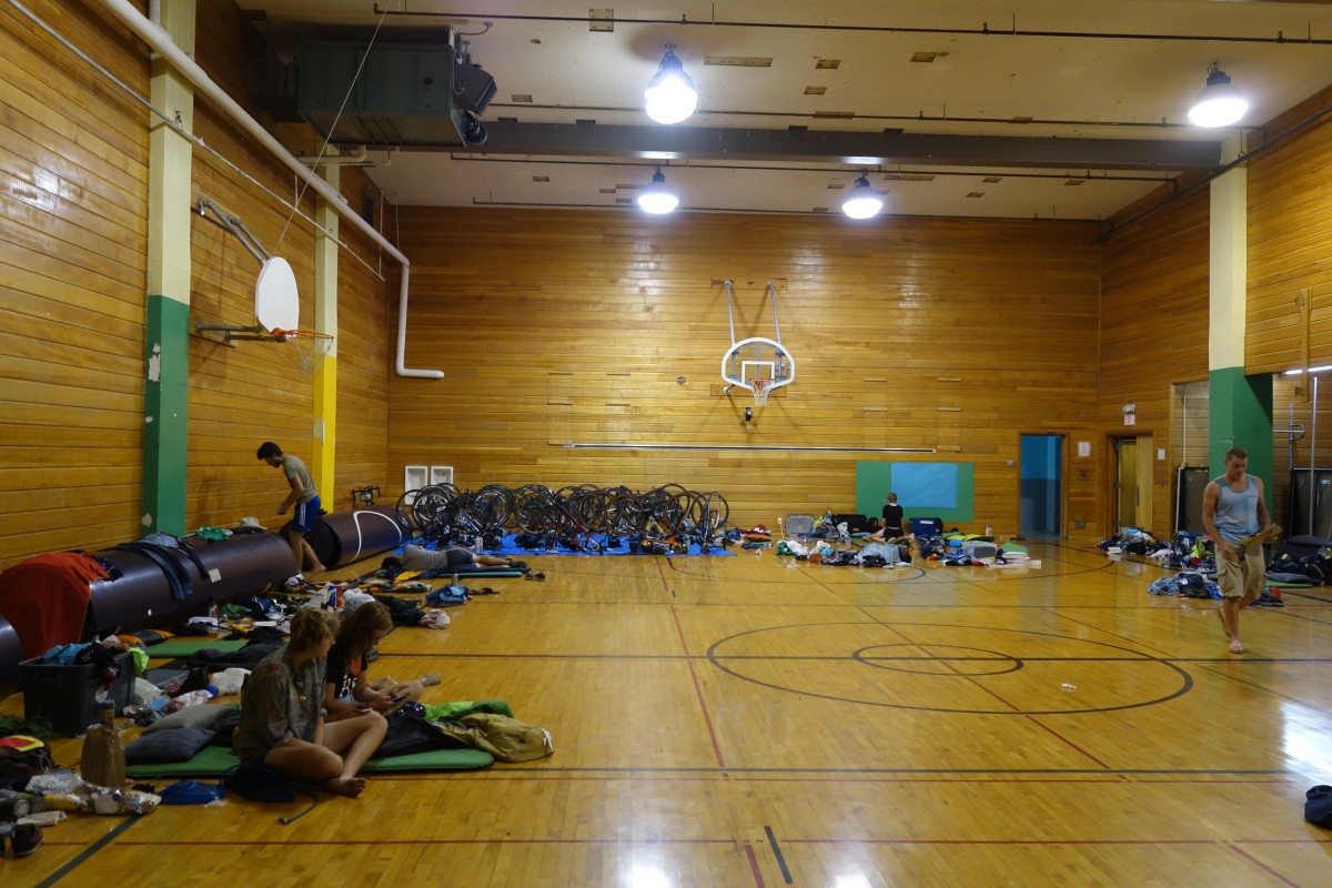 For our final day off (tomorrow), we stayed in Lincoln Jr. High. At least, it used to be a school. More recently, it's been used as overflow for the town hall, and a bit of a community center. We had the entire gym to unpack into, which was very spacious. Burns itself was small, but fun to walk around in. Helen and I spent the afternoon in a used bookstore and came back with Packing for Mars, Tuesdays with Morrie, and a few other titles.
