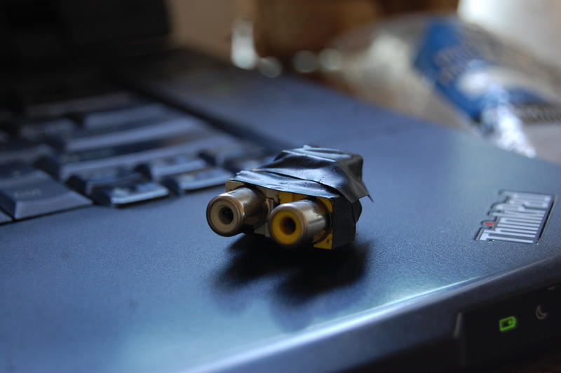 I only had white (left) and yellow (video) RCA's, so the gizmo uses a yellow plug for right. Sue me.