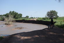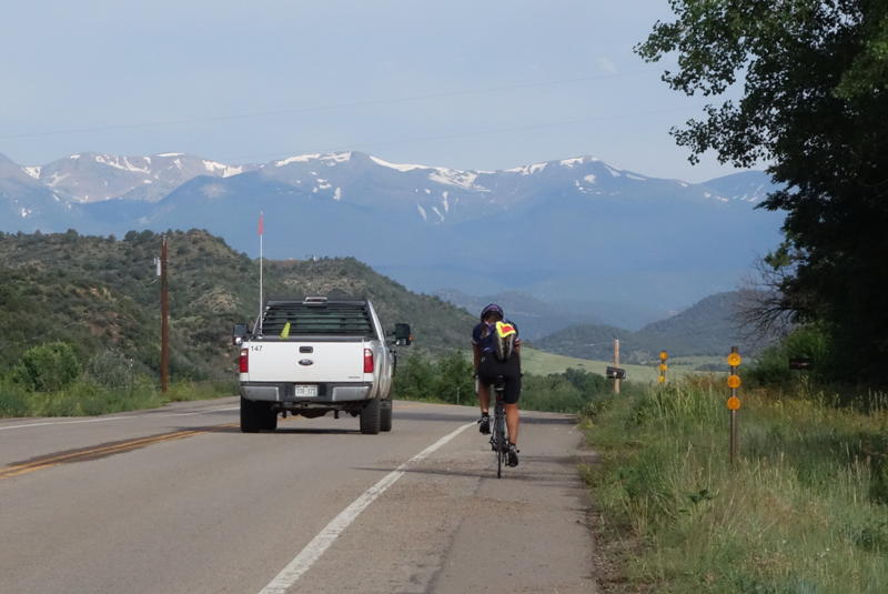 We had two choices of route today: either ride 116 miles through back roads (maybe mountains, maybe plains) or ride 54 miles on highway 25 (riding on the highway is legal in some sections). As a group, we voted to take the highway and be careful riding. It wasn't an especially pretty day, but the low mileage was nice.