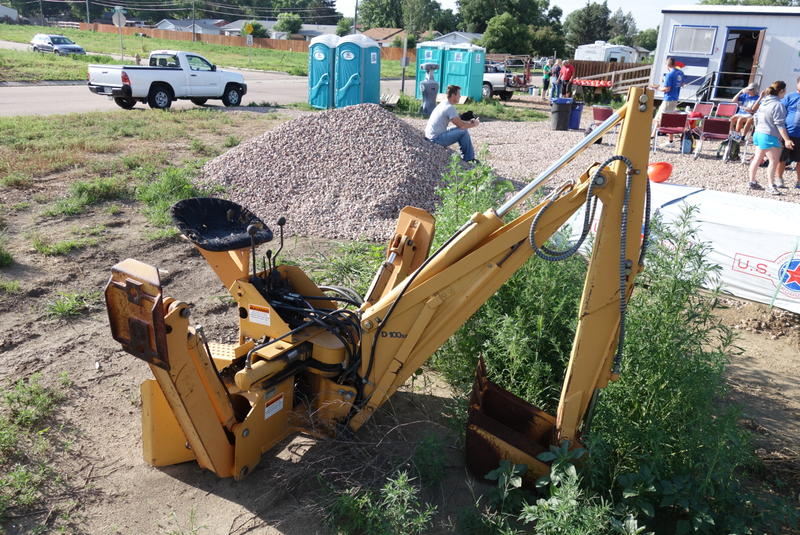 This Habitat affiliate has some cool equipment including this whatever-it-is, some big earthmovers, and an old pickup truck.