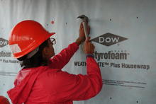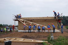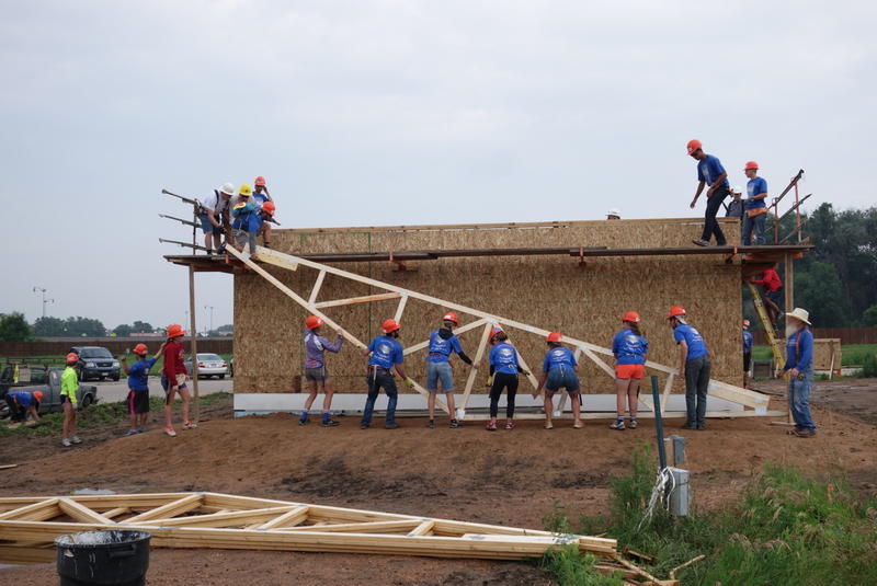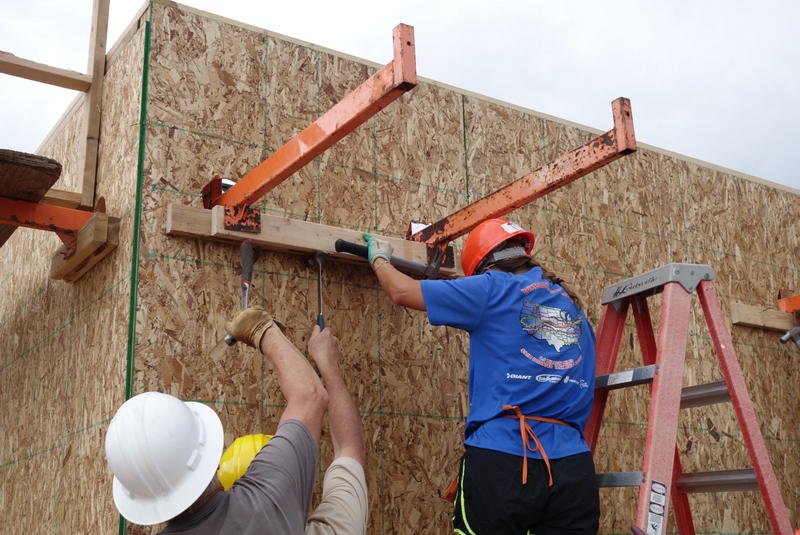 We split into a few smaller groups today to work on installing riding trusses on one house, house wrap on another, and a fence around a third.