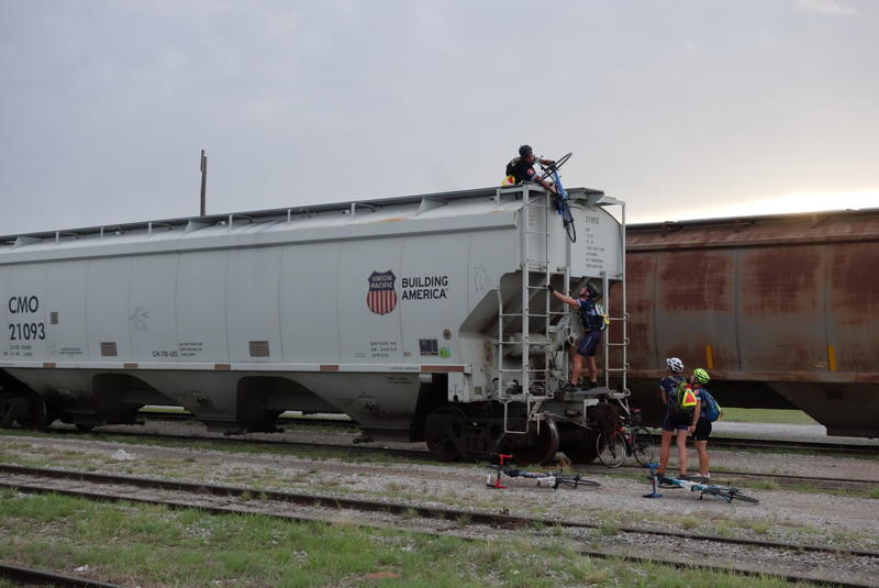 Unfortunately, bikes were banned on the highway we would have ridden into Colorado. To cover the last 20 miles into Trinidad, we loaded bikes into the emptied trailer 8 at a time and drove across the state line.