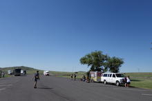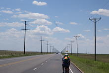 We biked into Colorado today! As we crossed through New Mexico and approached Colorado, the plains gradually began to give way to mesas and hills. As we neared the state line, the Rockies even came into view.