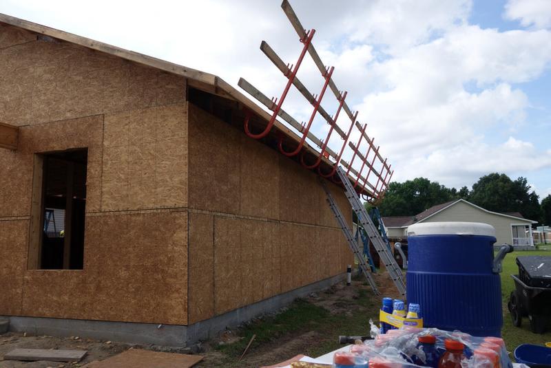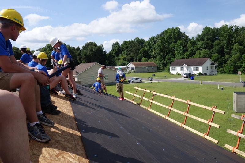 Today we participated in our first build day. The whole group laid an asphalt roof in a morning.